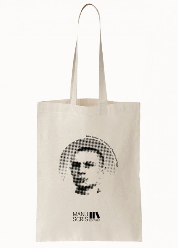 Sacoșă din bumbac de calitate imprimată cu portretul lui Mihai Buracu, supraviețuitor al Fenomenului Pitești. Sacoșa este produsă de Atelierul de Pânză, un ONG și întreprindere socială.